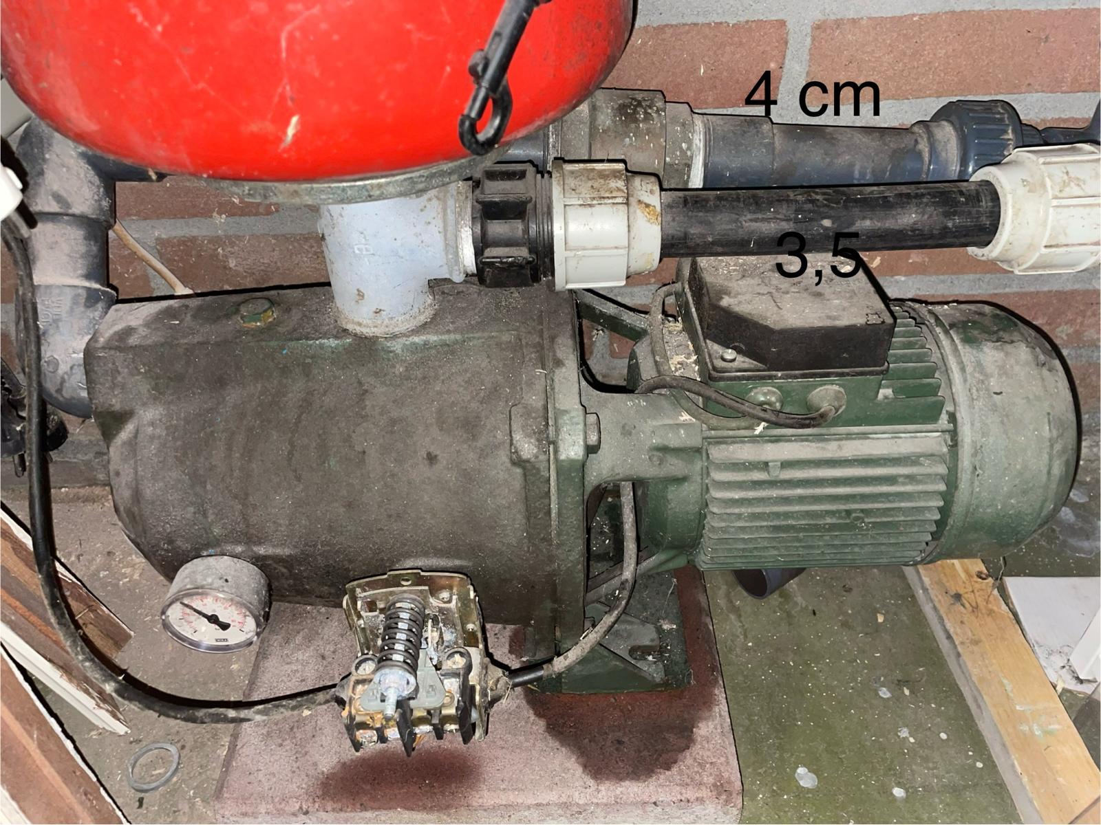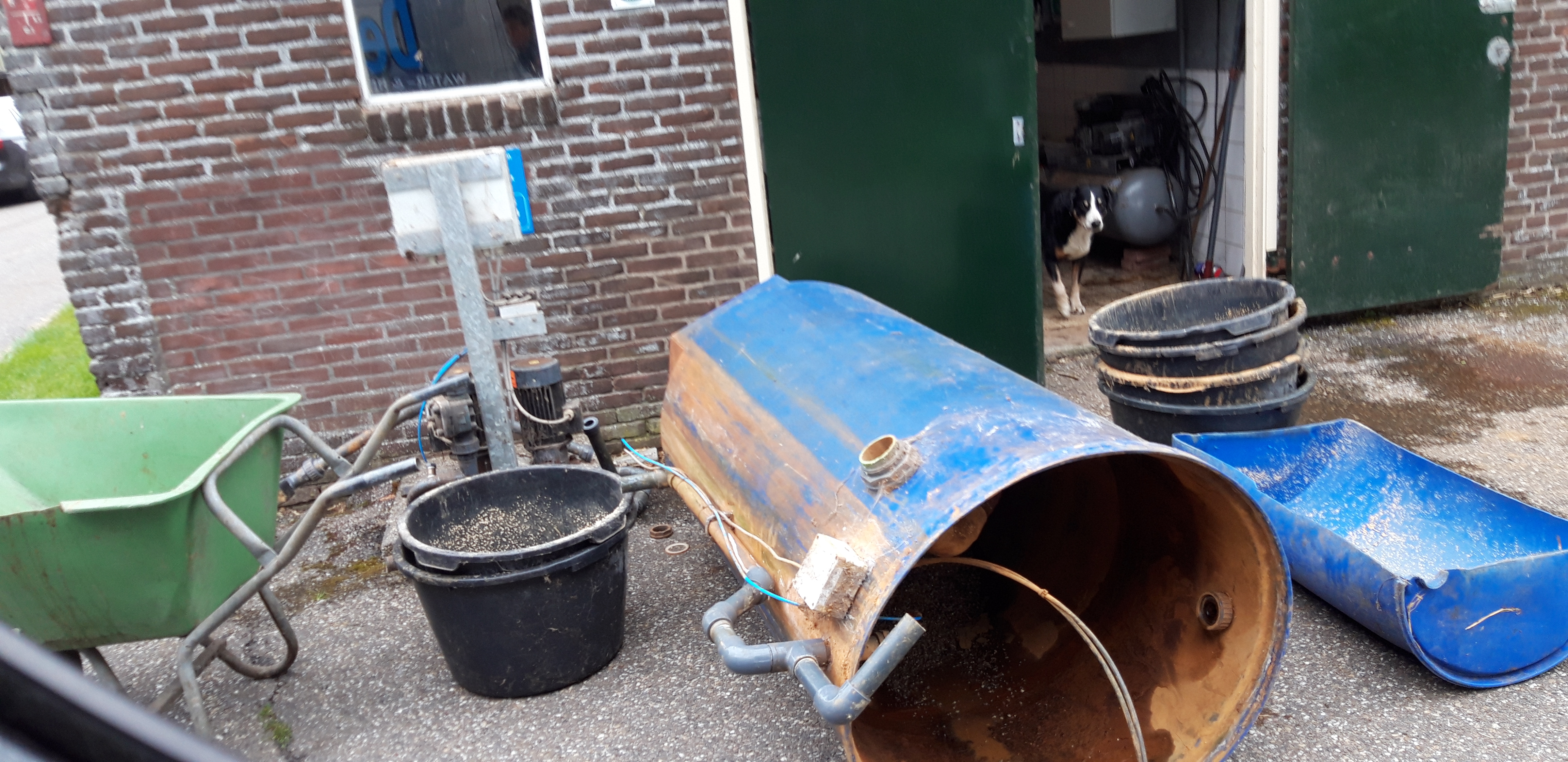 Door schade aan pomp vanwege vocht en moeilijke bediening van onder de vlonder het geheel verwijderd, leidingwerk aangepast en opnieuw opgebouwd op de steiger in een pomphok.