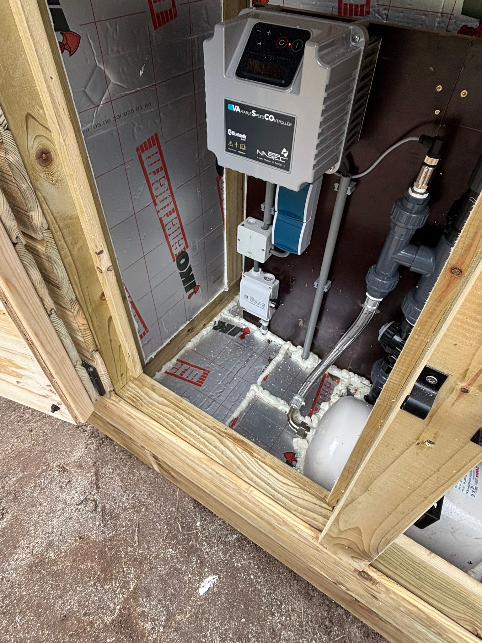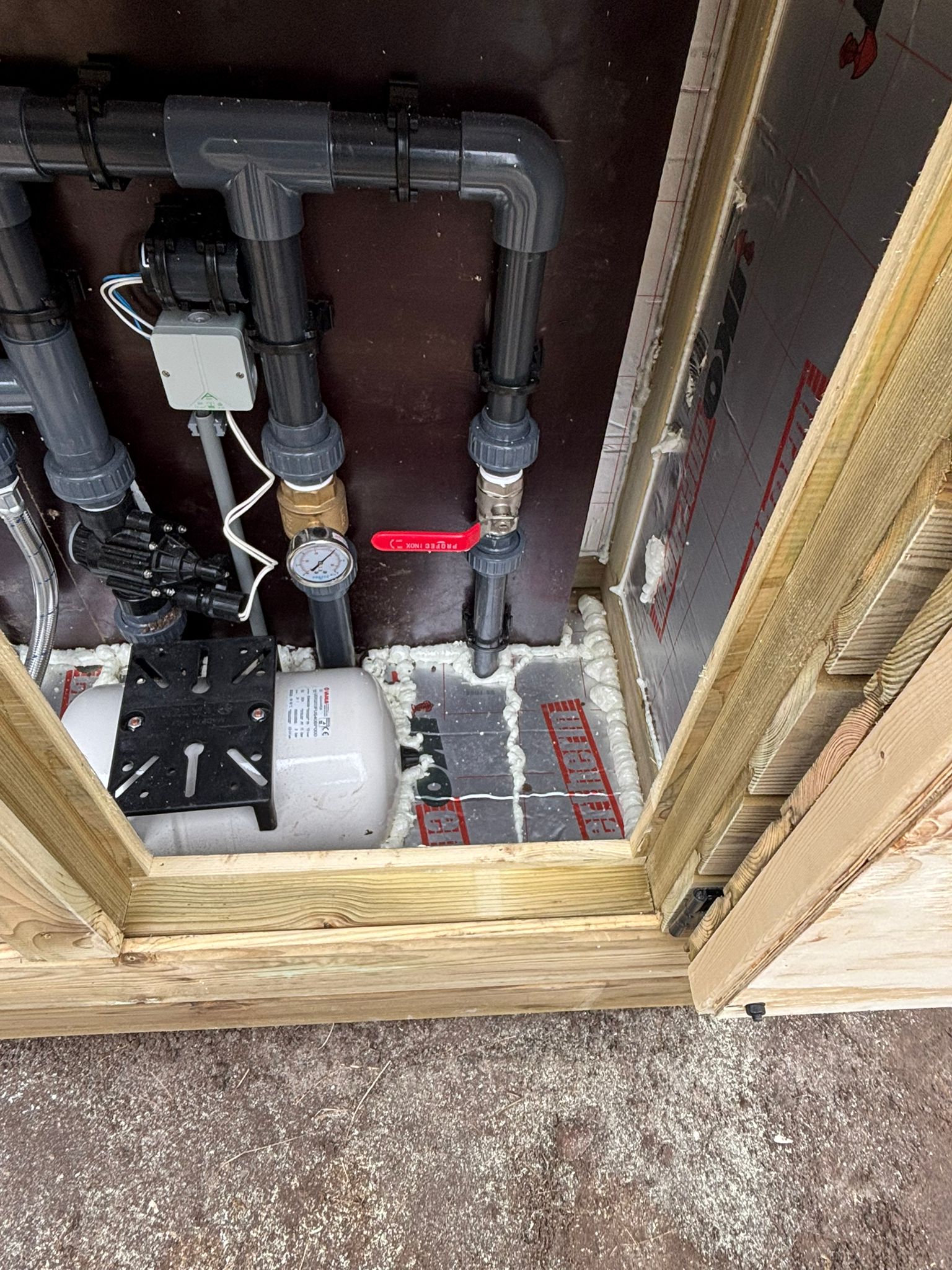 De vijvervulling wordt aangestuurd door een ingesteld programma op de bestaande beregeningsautomaat voorzien van een decodersysteem. De bronpomp met drukregeling en is voorzien van een frequentieregeling waardoor er ook tapwater kan worden gebruikt. Een zeer rustig, geluidsloos en energiebesparend duurzaam systeem. Het geheel afgewerkt in een pomphuis voorzien van isolatie.